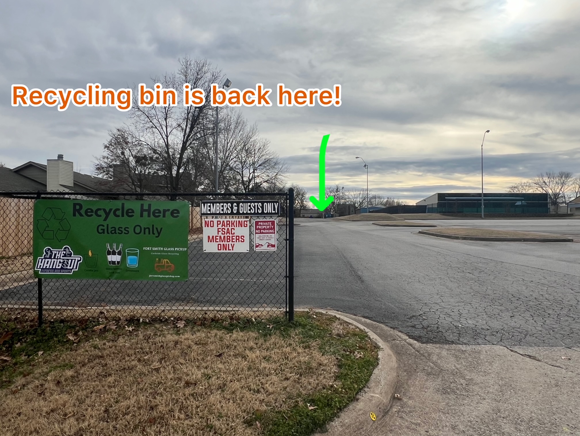 Our first and largest public glass drop-off site is proudly sponsored by the Sebastian County Conservation District. This site is located on the south side of Fort Smith on Brooken Hill Dr. just off of Hwy 271.